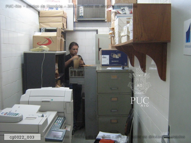 Pesquisador no local do acervo, na época sala da reprografia. |