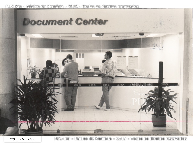 Primeira loja-piloto da Document Center com sede na PUC-Rio. Administrada pela Xerox do Brasil, a Document Center servia como gráfica e copiadora para atender as demandas de alunos e professores da Universidade. |
