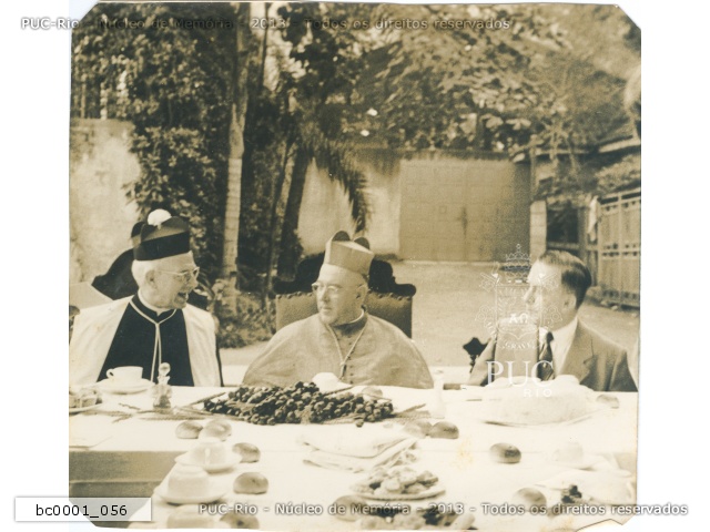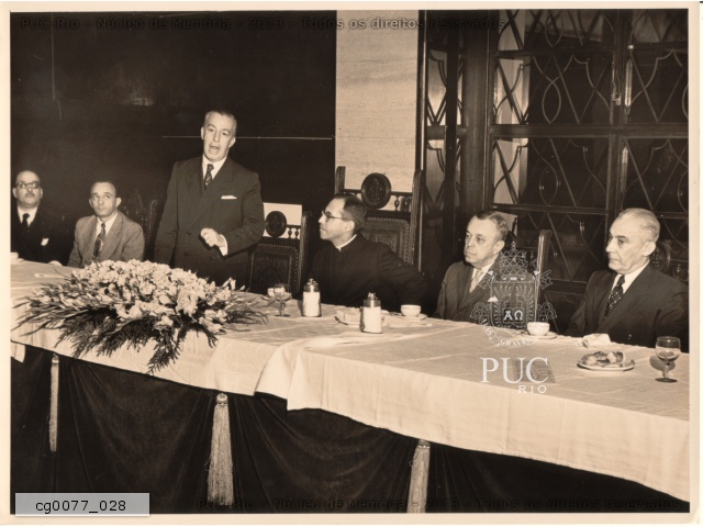 Padre Leonel Franca S.J. e convidados, no almoço em comemoração ao Dia do Reitor, no auditório da antiga sede das Faculdades Católicas na rua São Clemente. |