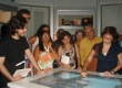Alunos do curso de Licenciatura a distância do Departamento de História da PUC-Rio interagem com a mesa da exposição. |