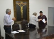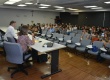 Reunião da equipe do Núcleo de Memória na nova sala, no Edifício Cardeal Leme. |