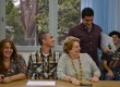 O Reitor da PUC-Rio, Prof. Pe. Josafá Carlos de Siqueira S.J., a Profa. Margarida de Souza Neves e a equipe do Núcleo de Memória na confraternização após a Assembleia Universitária. |