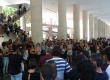 Manifestação nos pilotis com a participação de alunos, professores e funcionários. |