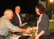 A funcionária Ana Lucia recebe os cumprimentos do professor Augusto Sampaio em agradecimento aos seus trinta e cinco anos de trabalho na PUC-Rio. |