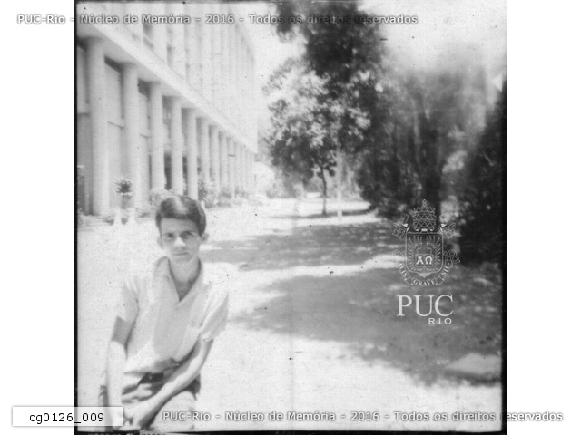 Antônio Albuquerque pouco tempo depois de ter sido contratado para trabalhar na Biblioteca Central da PUC-Rio, em frente ao Edifício Cardeal Leme. |