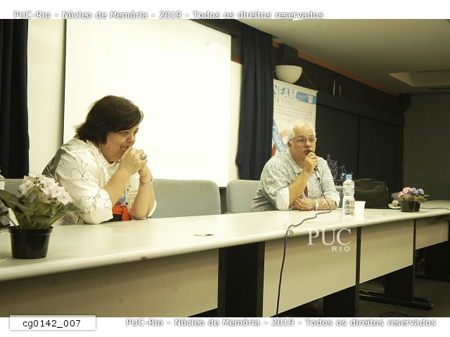 A profa. Maria Helena Novaes (PSI) e o prof. Audir Bastos (NEAM) ne mesa comemorativa dos 31 anos do NEAM. |