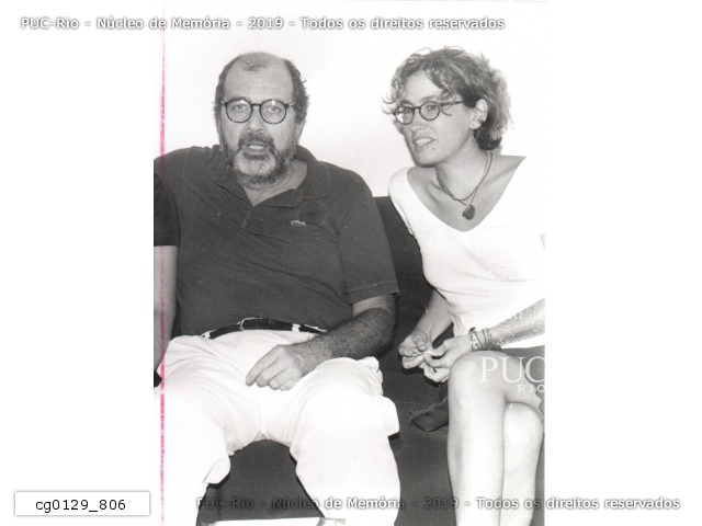Fotografia do cineasta Cacá Diegues e de sua assistente de produção Fernanda Santos Neves publicada no Jornal da PUC. À época Fernanda cursava a graduação em Comunicação Social na PUC- Rio e trabalhava na produção de Orfeu, 14° filme de Cacá Diegues. |