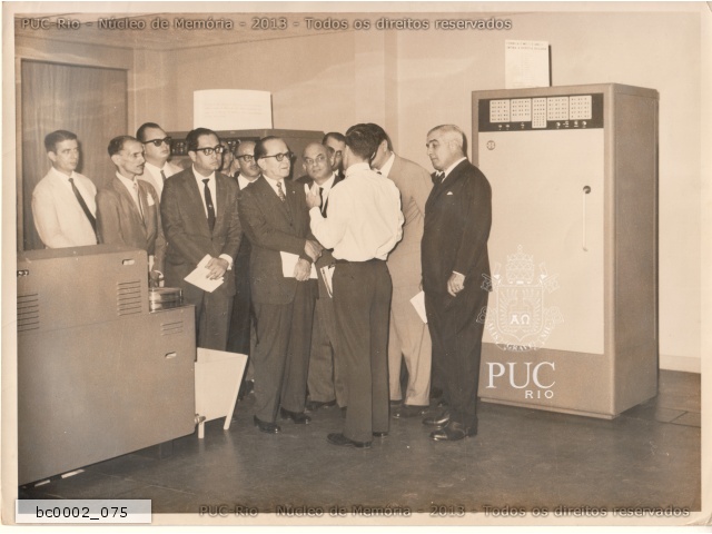Georg Herz, engenheiro da Burroughs, apresenta o computador Burroughs 205, o primeiro computador da PUC-Rio, conhecido como cérebro eletrônico e com memória de cerca de 16Kb.