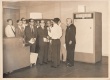 O engenheiro George Herz (de costas) apresenta o computador Burroughs B205 a visitantes. |