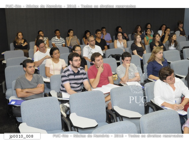 Professores, funcionários e representantes da administração central da PUC-Rio assitem à cerimônia de posse da Professora Daniela Vargas na função de coordenadora central de graduação da PUC-Rio, em agosto de 2011. |