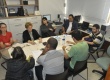 Reunião da equipe do Núcleo de Memória na nova sala, no Edifício Cardeal Leme. |