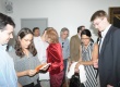 A professora Maria Sarah Telles cumprimenta a professora Sônia de Camargo. |