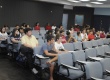 O Reitor da PUC-Rio, Prof. Pe. Josafá Carlos de Siqueira S.J., a Profa. Margarida de Souza Neves e a equipe do Núcleo de Memória na confraternização após a Assembleia Universitária. |