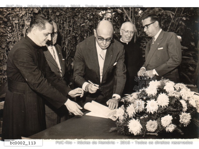 Personalidades presentes à 1ª reunião do Código de Honra'. Livro de ouro das assinaturas da Escola Politécnica da Pontifícia Universidade Católica |