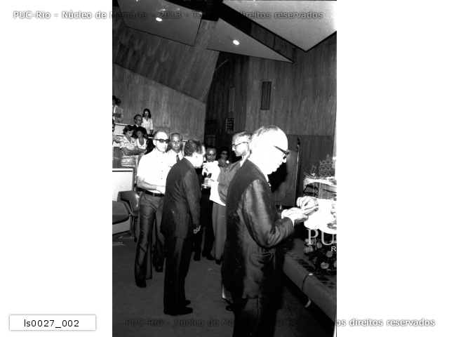 Cerimônia não identificada com a presença do Reitor pe. Mac Dowell S.J. e do ex-Reitor pe. Velloso S.J.. |