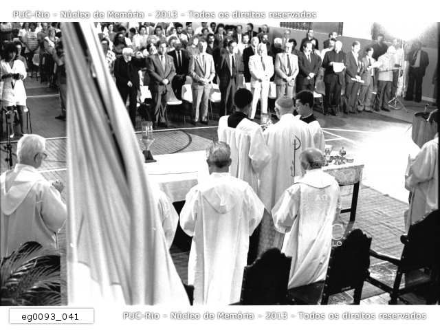 Padres, professores, funcionários e convidados reunidos na Missa de Ação de Graças em homenagem aos 50 anos da PUC-Rio. |