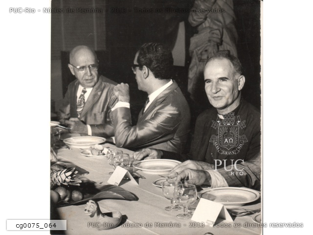 Evento, provavelmente no Palácio Guanabara, em que o prof. Haroldo Vallador (JUR), professor fundador da PUC-Rio, recebeu o título de Cidadão do Estado da Guanabara. |