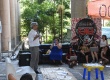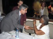 O prof. Adriano Pilatti e o prof. Alessandro Molon confraternizam com representante do Jongo da Serrinha. |