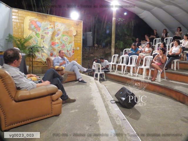 Os palestrantes conversam com a plateia no anfiteatro. |