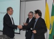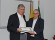 Professor Arndt von Staa recebe os cumprimentos do Decano do Centro Técnico Científico da PUC-Rio, professor Silva Mello. |