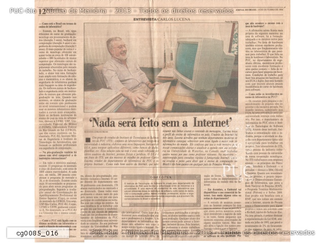"A tomada é mais embaixo", matéria sobre a RNP e a implantação da Internet no Brasil, com depoimento do Prof. Carlos Lucena e imagem da página do Comitê Gestor da Internet no Brasil. |