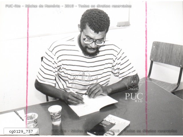 cg0129_757 | 21/3/1995 | Fotografia do professor e jornalista Carlos Nobre publicada em matéria do Jornal da PUC sobre o lançamento do seu livro Mães de Acari. |