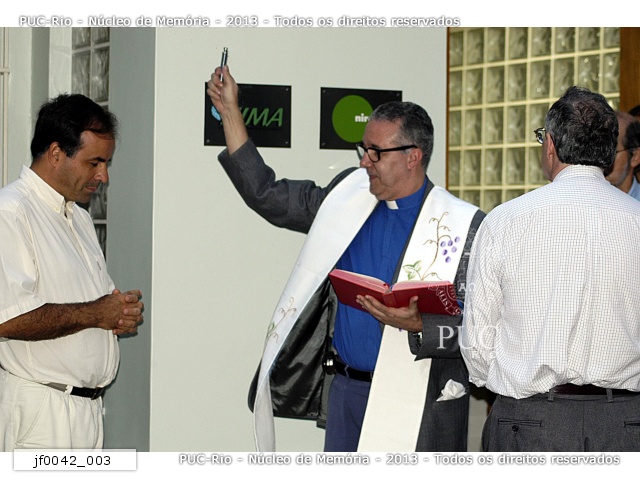 O Vice-Reitor Pe. Josafá Carlos de Siqueira S.J. abençoa a nova sede do Nirema. |