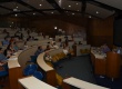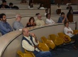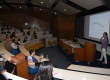 Mesa com professores palestrantes e plateia presente ao evento. |