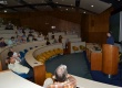 Mesa e a plateia no auditório durante a Aula Magna. |