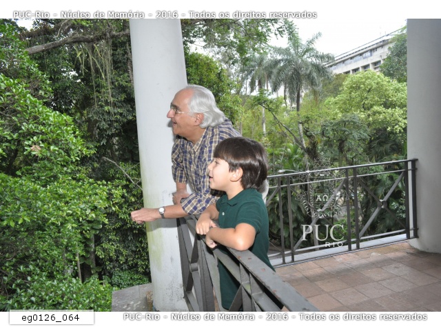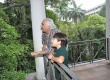 O professor Gustavo Sénéchal e seu neto na varanda do Solar. |