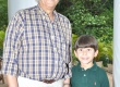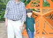 O professor Gustavo Sénéchal e o seu neto na área externa do Solar. |