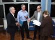 Confraternização após a cerimônia de inauguração da sede do curso de Ciências Biológicas da PUC-Rio. Ao fundo estantes da exposição ´Da natureza às ciências da vida´. |