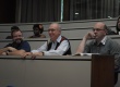 O avaliador, prof. Glaucio José Mafron, e os professores Augusto César e João Rua nas apresentações orais dos bolsistas de iniciação científica do Departamento de Geografia. |