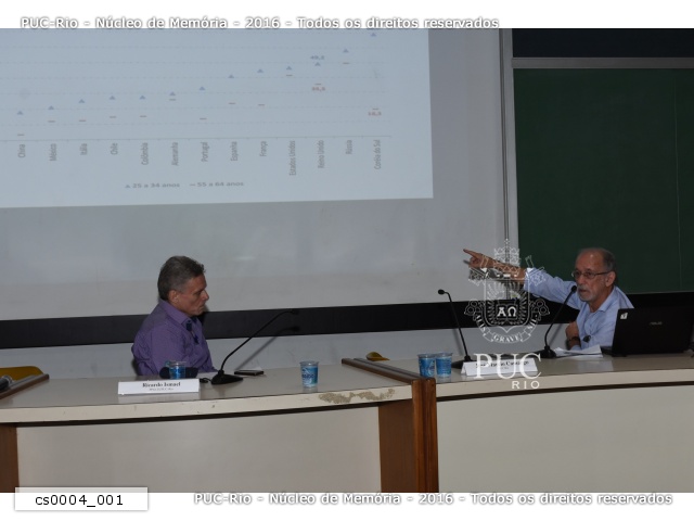 Palestra sobre desigualdade social no Brasil com os professores José Márcio Camargo e Ricardo Ismael. |