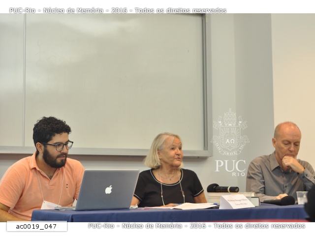 A professora Margarida acompanha a visita do Reitor Padre Josafá S.J. e do prof. Karl Erik à exposição "Gávea - Território de Diversidades, Morada de Contradições". |