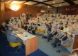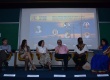Mesa e a plateia no auditório durante a Aula Magna. |