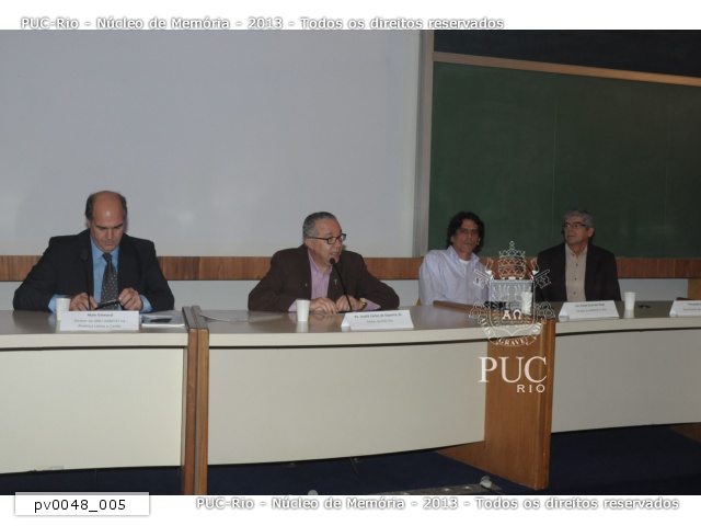 A PUC-Rio foi designada para celebrar o Dia Mundial do Habitat de 2011 no Rio de Janeiro. O reitor Padre Josafá, o vice-reitor Padre Ivern e os professores do NIMA Luiz Felipe Guanaes Rego e Fernando Walcacer recebem o diretor do ONU HABITAT na América Latina e no Caribe, Alain Grimard |