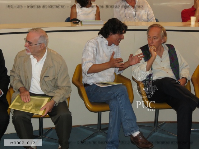 Pré-palestra. Conversa informal entre palestrantes e mediador da mesa. |