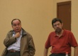 O prof. Luiz Roberto Azevedo cumprimenta a profa. Luiza Helena, ex-diretora do Departamento de Serviço Social. |