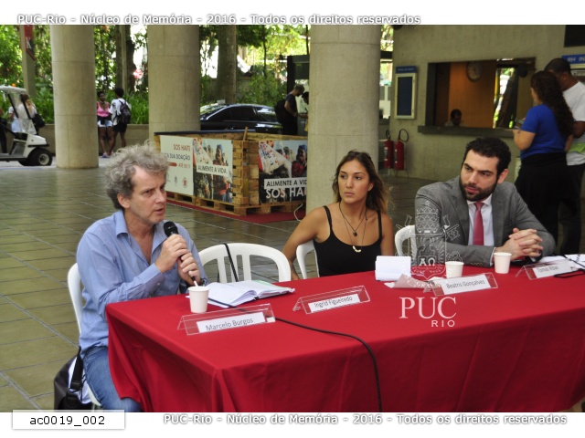 O professor Marcelo Burgos, Beatris Gonçalves e o advogado Tomás Ribas. |