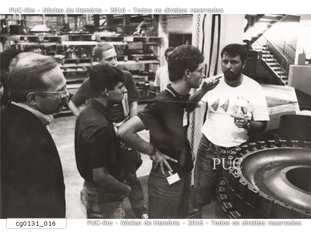 Alunos de Economia e Administração, guiados pelo Prof. Bocater, visitam a Cia. Eletromecânica Celma, em Petrópolis. A estatal, ligada ao Ministério da Aeronáutica, iria ser privatizada. |