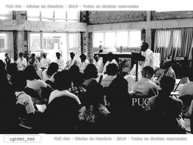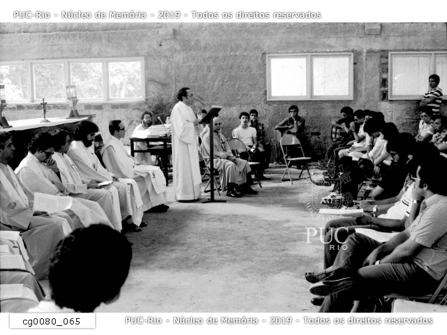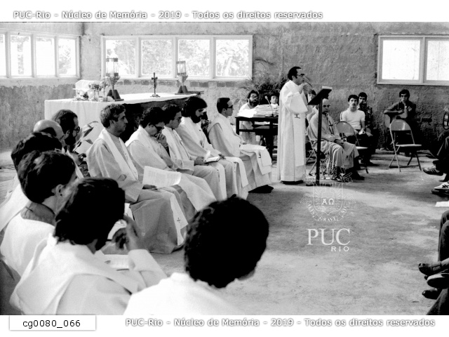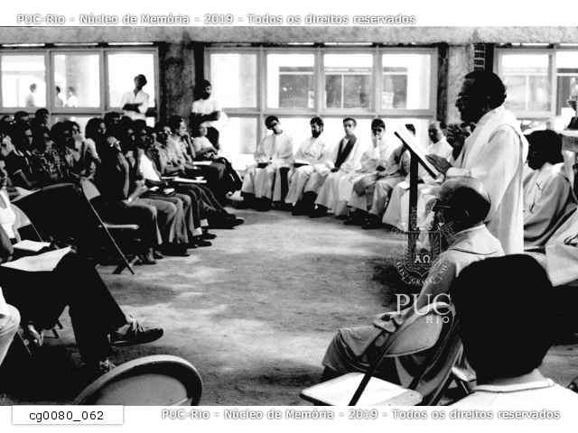 Missa celebrada por vários padres da PUC-Rio em homenagem à Dom Oscar Romero (arcebispo de San Salvador assassinado), ao padre jesuíta Luis Espinal (assassinado na Bolívia) e ao sub-diácono Júlio César (agente de pastoral da Diocese de Valença/RJ, vítima de espancamento). |