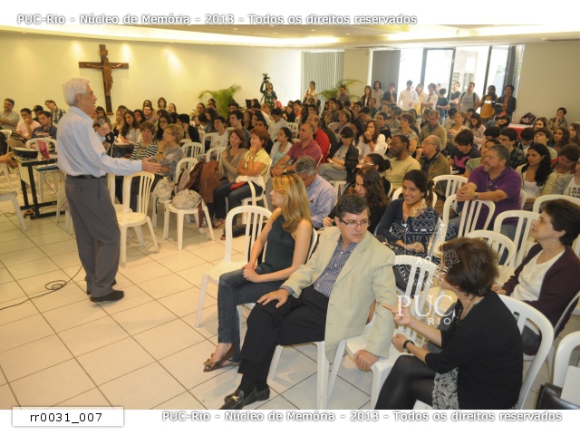 Plateia durante a conferência do Professor Alfonso Garcia Rúbio, doutor do Departamento de Teologia da PUC-Rio. |