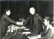 O prof. pe. Amarilho Checon S.J. cumprimenta formanda do curso de Processamento de Dados. |