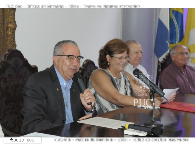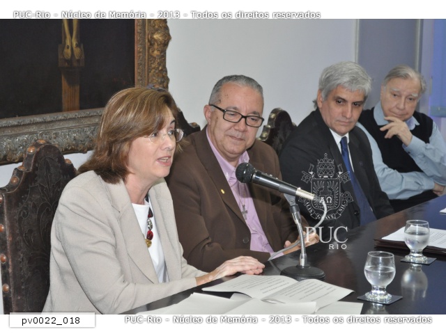 O vice-reitor acadêmico prof. José Ricardo Bergmann dá inicio à cerimônia de posse da Professora Daniela Vargas na função de coordenadora central de graduação da PUC-Rio, em agosto de 2011. Ela substitui o Professor Alfredo Jefferson, presente à mesa, com o reitor pe. Josafá e o vice-reitor pe. Ivern. |