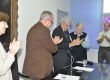 Reitor Pe. Josafá cumprimenta o ex-diretor do Departamento de Comunicação Social da PUC-Rio, professor Cesar Romero. |