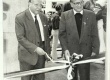 O Reitor Padre Jesús Hortal S.J. e o Padre Francisco Ivern S.J. cortam a fita inaugural da Mostra PUC de 1997. Ao fundo, carro com propaganda da Telerj. |