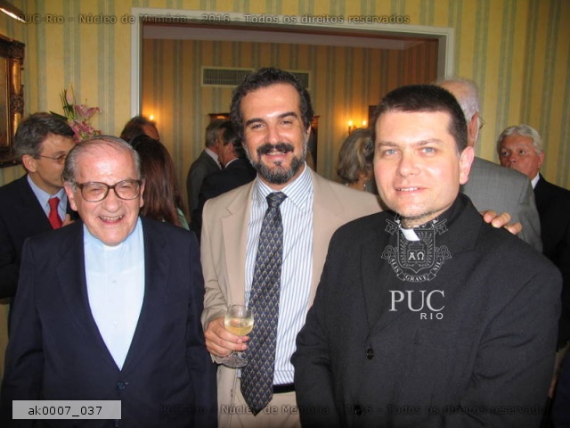 Inauguração de exposição durante o Seminário Internacional A Globalização e os Jesuítas, realizado na PUC-Rio entre 26 e 29/09/2006. Na foto, o Reitor Pe. Hortal S.J., o Prepósito Geral da Companhia de Jesus, pe. Peter-Hans Kolvenbach S.J., e o Vice-Reitor Pe. Josafá S.J.. |