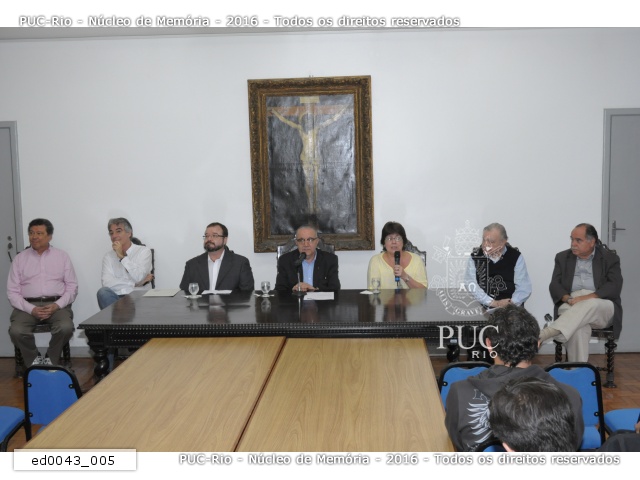 Mesa com o Reitor Pe. Josafá S.J., o Vice-reitor Comunitário Prof. Augusto Sampaio e o Coordenador de Atividades Estudantis Prof. Renato Callado. |