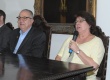 O Reitor Pe. Josafá S.J. e a profa. Regina Célia se cumprimentam na cerimônia de posse. |